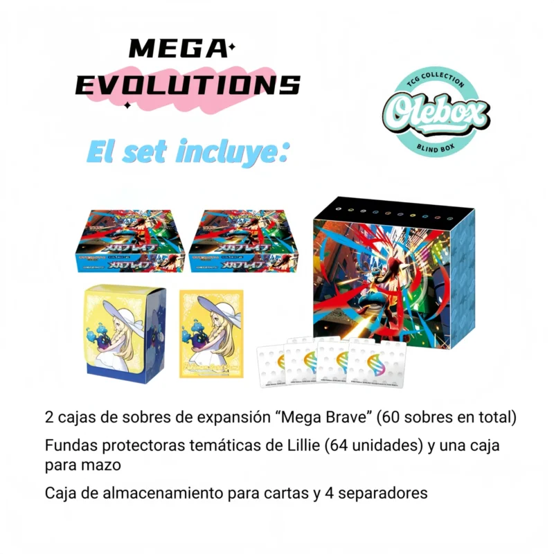 Incluye 2 cajas de sobres de expansión “Mega Brave” (60 sobres en total) para ampliar rápidamente tu colección.